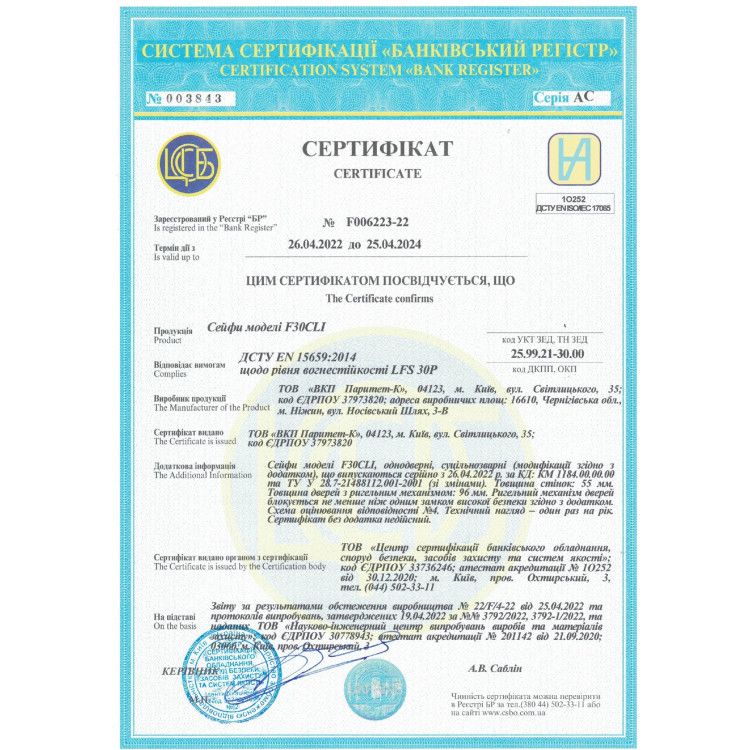 Серія F. 30CLI являє собою унікальну лінійку сертифікованої продукції здатну одночасно захищати цінні речі від зламу (перший клас) і дії вогню (клас LFS 30P). Корпус і двері сейфа заповнюються огневзломостойким бетоном товщиною 55 мм, а вбудована ригельна система відрізняється тристороннім захистом, кодовим сертифікованим сейфовим замком M-LOCKS чи SmartLock або ключовим STUV і німецької термострічкою BASF.