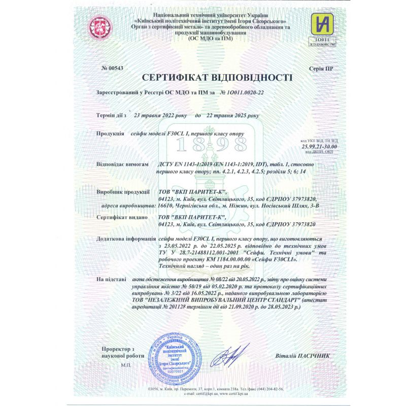 ВзломостойкостьI класс по ДСТУ EN 1143-1:2014