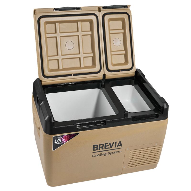Автомобільний холодильник Brevia 31 л двокамерний (23335, компресор LG) — сучасний компресорний холодильник для подорожей, кемпінгу, риболовлі та тривалих поїздок. Оснащений надійним компресором LG та двома окремими камерами з незалежним регулюванням температури, що дозволяє одночасно охолоджувати і заморожувати продукти.