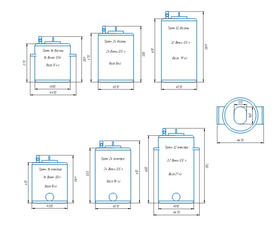 Весь модельний ряд ТРОЯН виготовляється із чорної сталі товщиною 3мм. Всі автоклави проходять перевірку на герметичність з тиском 8 Bar (робочий тиск 4 Bar).
