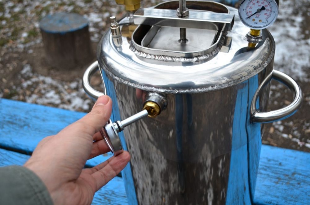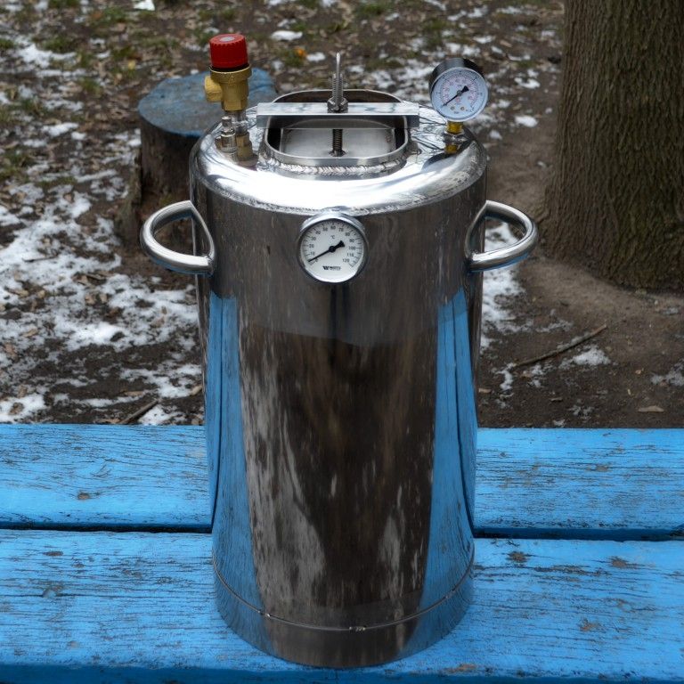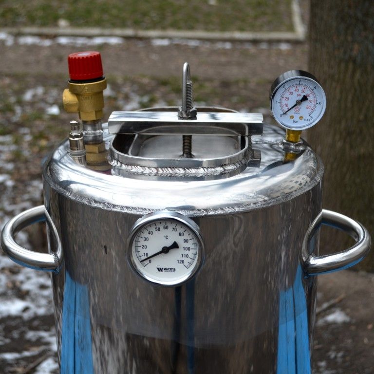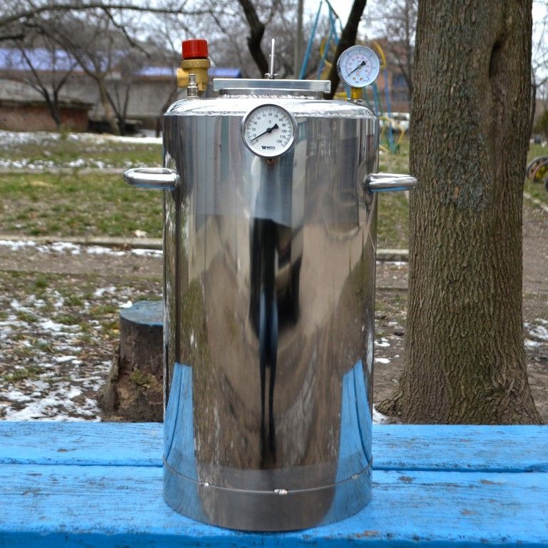 Побутовий автоклав – незамінний помічник для приготування консервації. Завдяки температурному режиму, який створюється в автоклаві, вдається знищити усі хвороботворні бактерії. Автоклав виготовлений із харчової нержавіючої сталі марки AISI 304: корпус має товщину 2 мм., кришка – 4 мм. Наявність біметалевого термометра з латунною гільзою робить експлуатацію автоклава зручнішою, оскільки відпадає необхідність заливати і зливати мастило з гільзи термометра. Всі автоклави проходять перевірку на герметичність з тиском 8 Bar (робочий тиск 4 Bar).