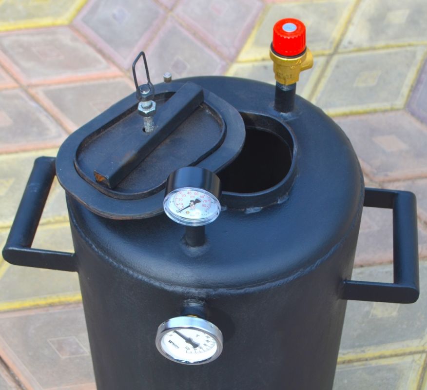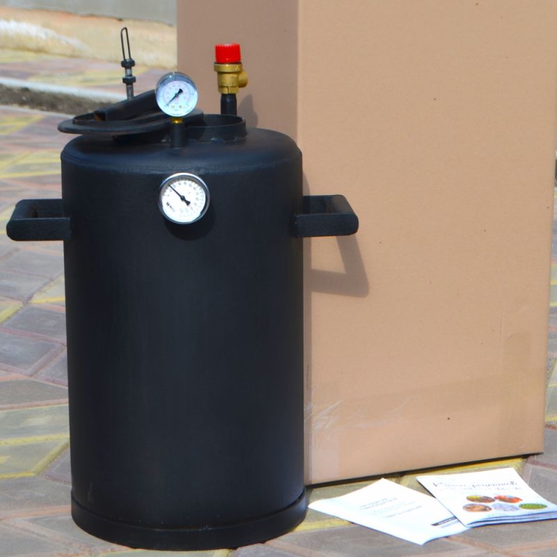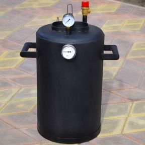 Автоклави модельного ряду ТРОЯН мають зручну, надійну кришку і сучасний біметалевий термометр, в який не потрібно заливати мастило. Кришка автоклава закручується лише однією гайкою (баранчиком) від руки. Зростаючий тиск притискає кришку зсередини, що забезпечує рівномірне притискання і чудову герметичність автоклава. В автоклавах старого зразка кришка закручувалася на 7-8 гайок, що займало чимало часу. Крім того, могли виникнути проблеми з герметичністю, якщо не дотягнути одну з гайок. ТРОЯНи ж виготовляються із чорної сталі товщиною 3мм., що дозволяє експлуатувати автоклав багато років до появи наскрізної корозії корпусу.