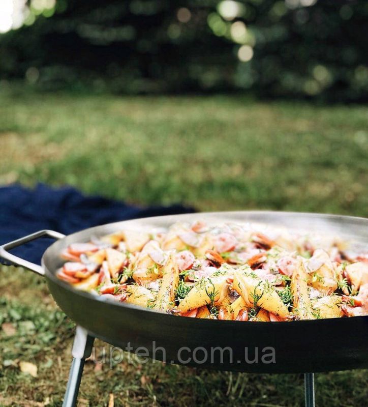 Диск для пікніка з харчової неіржавкої сталі Не купуйте диски сковороди з чорного металу. Він не харчовий, не розрахований на контакт із продуктом за високих температур, покривається іржею. Поціновуйте своє здоров'я! Сковорода дуже зручна річ на природі! На ній готується все дуже швидко та смачно. Завдяки тому що ручки та ніжки знімні, вона дуже зручна під час транспортування. У наявності діаметр 447 мм. 320 мм. 600 мм. Ціна вказана за сковорідку діаметр 447 мм Технічні характеристики: Матеріал: харчова неіржавка сталь (Aisi 304) Товщина: 1.5 мм. Діаметр: 320 мм. Висота бортика: 50 мм. Гарантія: 12 міс Регульовані ніжки! Легко знімаються і складаються. Зручні міцні ручки. Харчова неіржавка сталь! Сковорода з диска для пікніка на природі Ви знаєте, що на пікніку можна приготувати рагу, будь-яку страву з гриль меню, підсмажити м'ясо або рибу з овочами, втілити складні рецепти та водночас отримати достатній об'єм готової їжі, щоб нагодувати всіх мешканців? Допоможе в цьому зручна сковорода диск із неіржавкої сталі. Вона набагато зручніше, легше та компактніше барбекю і мангалу та збирається за кілька хвилин: досить приєднати ніжки. Ми пропонуємо купити велику сковороду для пікніка з диска в Україні безпосередньо від виробника — і тоді будь-який похід на природу приноситиме задоволення різноманітному меню, а не банальними шашликами. Переваги виробу різні діаметри диска — готуйте для сім'ї або великої компанії друзів; безпечна якісна неіржавка сталь, яка не втрачає своїх властивостей; високі ніжки, що дають змогу зручно розташувати диск над багаттям; сковорода для пікніка з диска легко розбирається й поміщається в багажнику; приготування будь-якої страви швидке — і водночас нічого не пригорає. Диск сковорода з неіржавкої сталі: готуйте із користю Наша велика сковорода-диск гарантовано безпечна. Неіржавка сталь не вступає в взаємодію з продуктами, не іржавіє й не шкодить здоров'ю. Якщо ж ви вирішите заощадити та придбати виріб із чорного металу, будьте готові до ризиків: нагріваючись, цей нехарчовий матеріал швидше іржавіє, взаємодіє з продуктами, що може призвести до проблем із печінкою та іншими органами. Купуйте за вигідною ціною сталеву сковороду з диска на нашому сайті. Вибирайте оптимальний діаметр, задавайте питання: ми допоможемо, нам порадимо, швидко оформимо замовлення й забезпечить надсилання по Україні. Відпочивайте та живляйте повноцінно — урізноманітніть своє меню за допомогою зручного виробу з неіржавкої сталі. З ним ви сміливо можете поїхати не тільки на одноденний пікнік, але й у тривалу подорож.