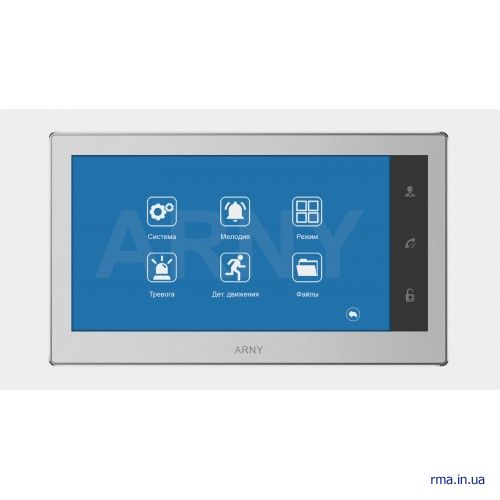 Модернізована модель відеодомофона з сенсорним дисплеєм діагоналлю 7 ". Підтримує аналогове і цифрове HD / Full HD відео. Може отримувати сигнали від 2 викличних панелей і 2 камер стандартів AHD / CVI / TVI / CVBS. Оснащена внутрішньою пам'яттю на 100 фотозображень і роз'ємом для SD-карти об'ємом до 64 Гб. Обладнана цифровим датчиком руху і 2 входами для зовнішніх детекторів тривоги. Працюючи в тандемі c трьома відеодомофонами ARNY дозволяє вести внутрішні переговори.