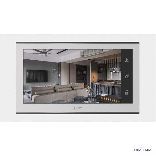 ARNY AVD-730 2MPX WiFi - мережевий відеореєстратор з суворим мінімалістичним дизайном білого кольору. Обладнаний IPS екраном з діагоналлю 7 '' і роздільною здатністю 1024x600px. Для двосторонніх аудіо переговорів встановлена ​​система Handsfree. Відеосигнал може надходити від двох викличних відеопанелей і двох відеокамер. Підтримуються стандарти AHD і CVBS. По одному з каналів на вибір працює вбудований відеодетектор руху. Можуть підключитися 2 зовнішніх датчика тривоги.