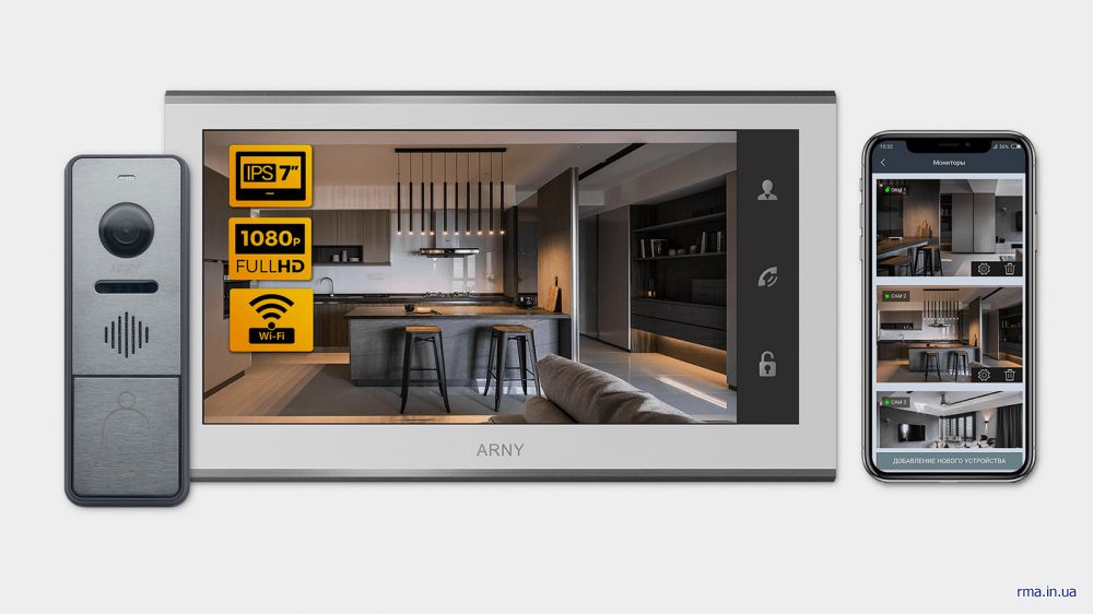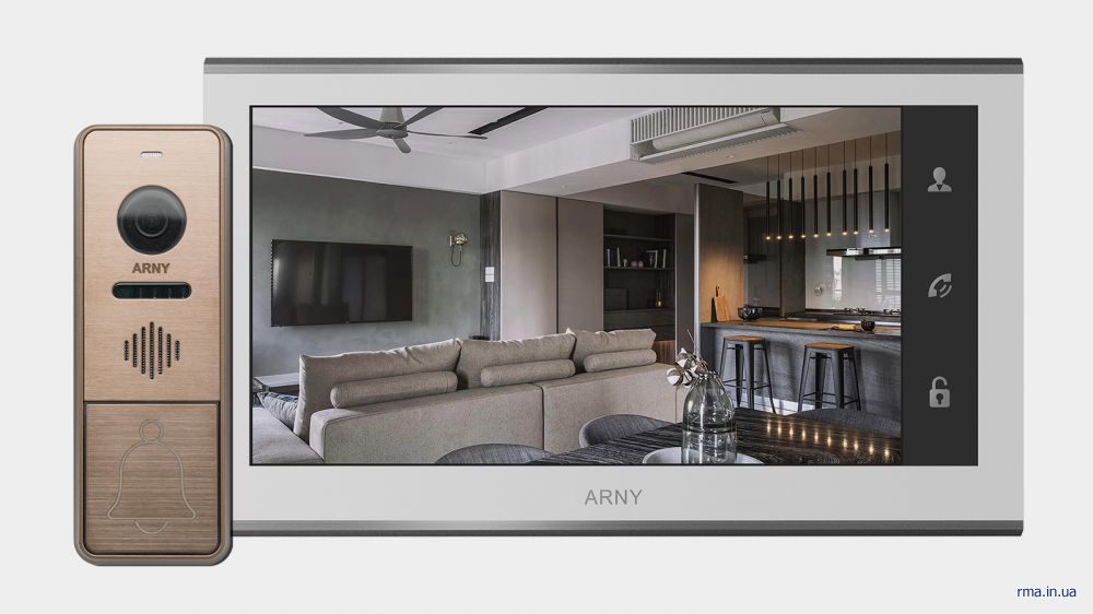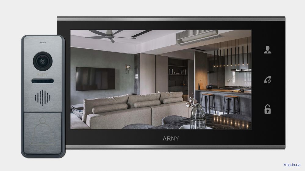 Комплект видеодомофона, включающий в себя монитор ARNY AVD-730 2Mpx WiFi и вызывную видеопанель ARNY AVP-NG430 2Mpx. Модель AVD-730 с дисплеем диагональю 7” поддерживает технологию AHD. Оборудована программным видеодетектором движения, интерфейсами для соединения с общедомовым домофоном и дополнительным монитором видеодомофона. Имеет сенсорное и механическое управление, разъем для SD карты, два входа для тревожных устройств. Сетевое подключение производится с помощью проводного Ethernet интерфейса или модуля WiFi. Видеопанель вызова оснащена 2-мегапиксельной камерой, реле и БУЗом для электромеханического замка.