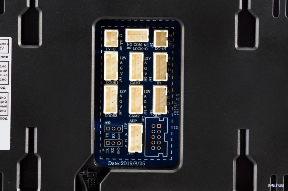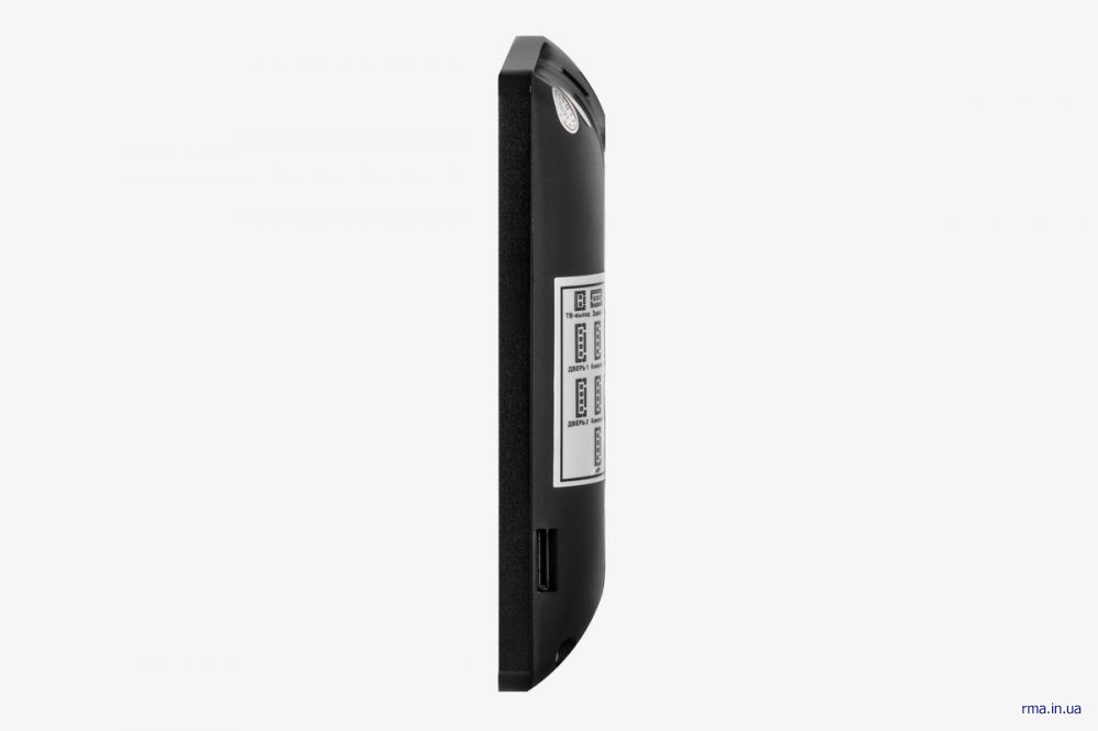 Пристрій має слот для карти пам'яті micro SD ємністю до 32 Гб. Вбудована пам'ять до 5 МБ може зберігати знімки, зроблені під час виклику, тривоги або виявленні руху. На верхній грані корпусу зручно розташована кнопка ON / OFF, щоб домофон можна було відключити від живлення в будь-який момент.