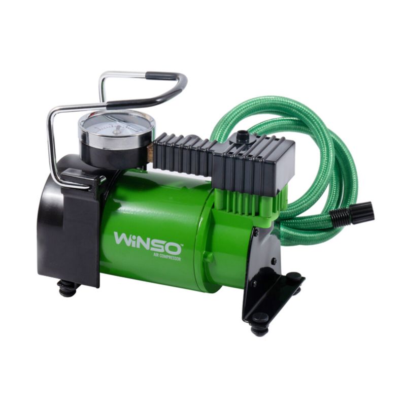 Компресор для накачування шин Winso. Класичний компресор підвищеної потужності. Легкий у транспортуванні, займає небагато місця завдяки невеликим габаритам. Обладнаний манометром. Корпус виготовлений з міцних матеріалів, які захищають компресор від механічних пошкоджень.