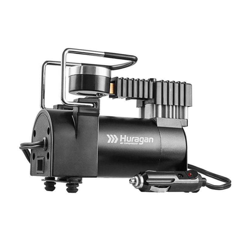 Для автолюбителя, важлива зручна і безпечна експлуатація автомобіля. З різних причин тиск в автомобільних шинах стає менше нормального рівня. Іноді, навіть покупка дорогої і якісної гуми не страхує від проколу шини, або від факту, що рано, чи пізно стиснене повітря може почати проникати через стінки покришки. Кожен автомобіліст повинен знати як впоратись з цим головним болем. Тому автомобільний компресор Huragan - є невід'ємною річчю в транспортному засобі. Саме він допоможе уникнути випадкового пробиття, або спущеного колеса.У комплекті також йде кабель живлення 3м, а міцний шланг, дозволить доставляти прилад до кожного колеса.