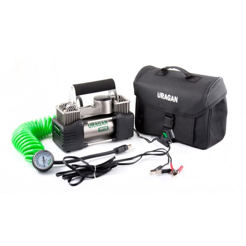 Двопоршневий автокомпресор URAGAN 90170 - це самий бюджетний недорогий потужний електронасос серед моделей з двома циліндрамиПотужність, Вт: 360Тип: ДвохпоршневіТип підключення: Зажими на акумуляторПродуктивність, л/хв: 85Час безперервної роботи, хв: 15Довжина шланга, м: 5,7Довжина кабелю живлення, м: 3LED ліхтар: -Макс. струм споживання, А: 30Макс. тиск Атм, кг/см: 10Рекомендовано до колеса, R": 17Напруга, V: 12Гарантія: 24 місяціКомпресор автомобільний Ураган 90170, двоциліндровий із зажимами АКБ