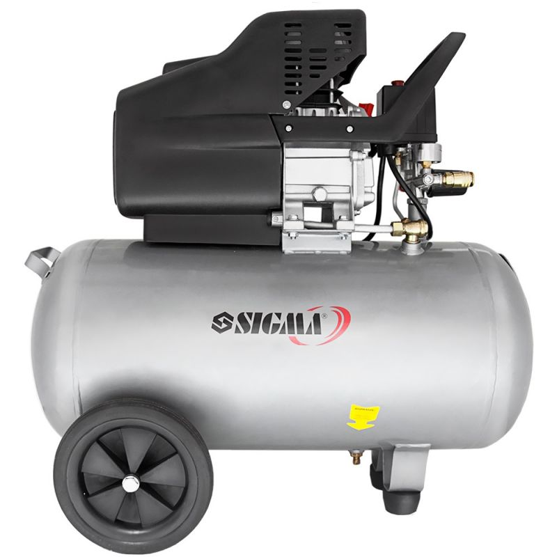 Модель SIGMA 230-8-50А знаходить широке застосування, особливо в гаражах, авторемонтних майстернях та при виконанні фарбувальних та оздоблювальних робіт. Її характеристики включають наявність зворотного і запобіжного клапанів, зручну пробку для зливу конденсату з ресивера, а також два універсальних швидкороз'ємних латунних конектора діаметром 1/4". Два манометри дозволяють контролювати тиск усередині ресивера і тиск на виході. Крім того, можна регулювати робоче тиск.