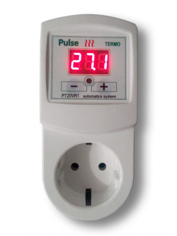 Терморегулятор PT20-VR1 (Мікропроцесорний терморегулятор двопороговий) застосовують у системах опалення, для керування температурою теплих підлог тощо. Терморегулятором керує мікроконтролер, який аналізує виміряну цифровим датчиком температуру, порівнює її із заданим значенням, враховує заданий режим роботи, і на підставі цих даних вмикає і вимикає навантаження. Комутація здійснюється електромагнітним реле.
