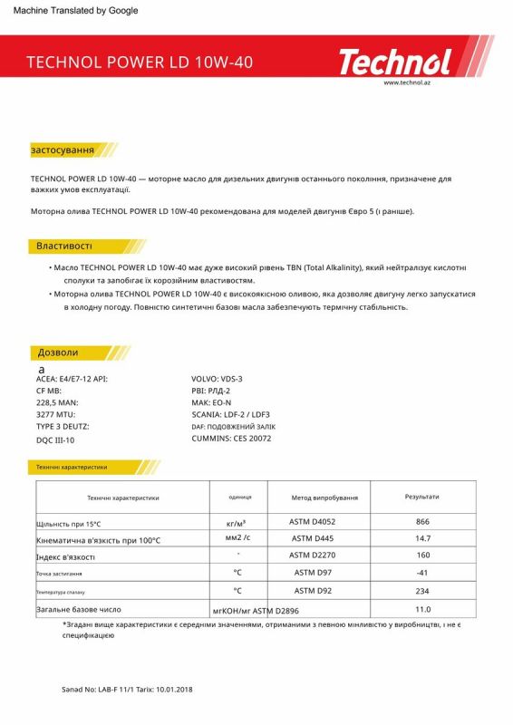 • Сульфатна зола: 0.8%