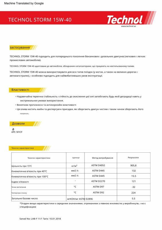 Comma рекомендує використовувати цей продукт у наведених нижче випадках. ACEA A5/B5; API SL