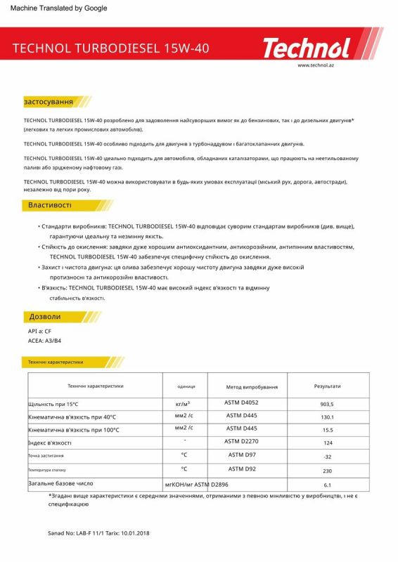 • Низька в'язкість знижує емісію, споживання палива та випаровування олії.