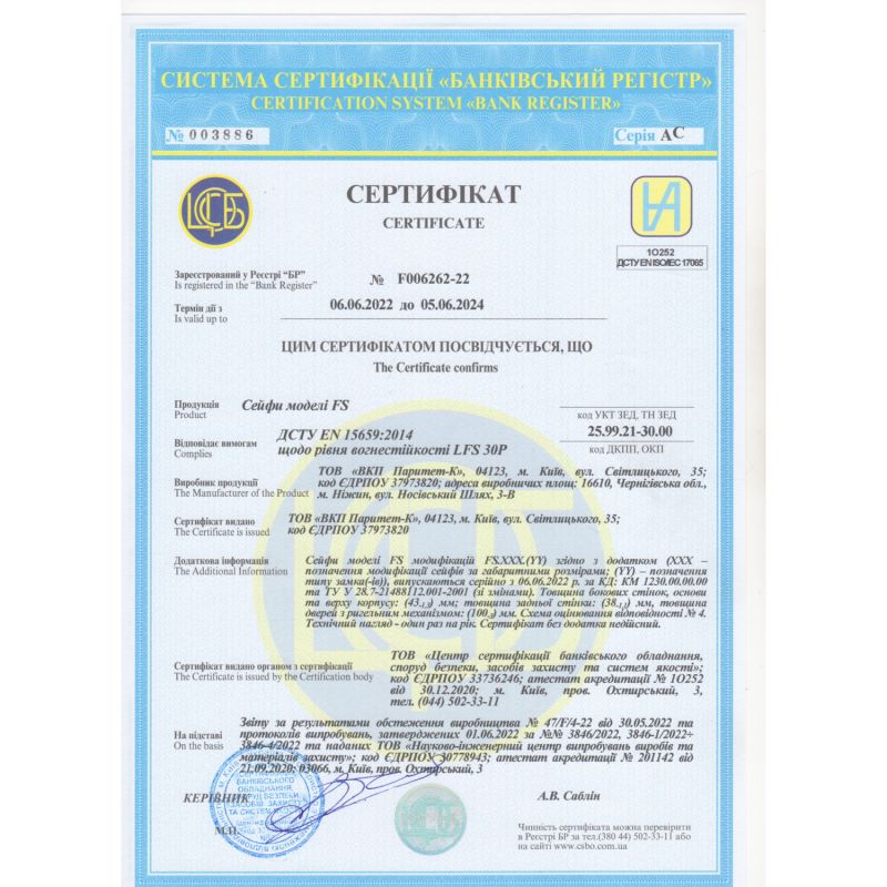 Огнестойкостькласс LFS 30P по ДСТУ EN 15659
