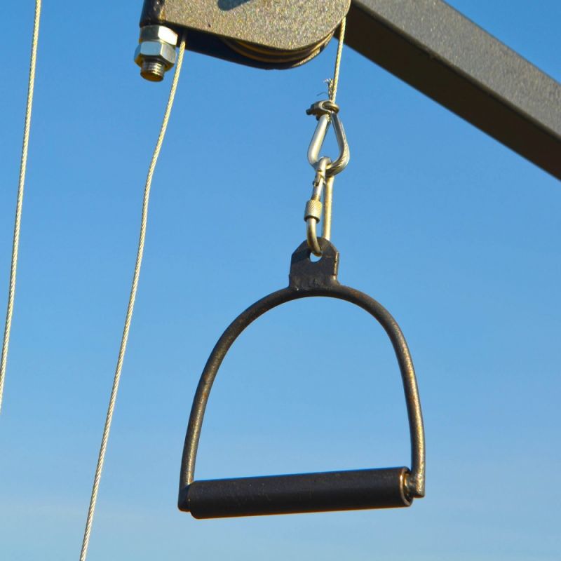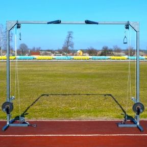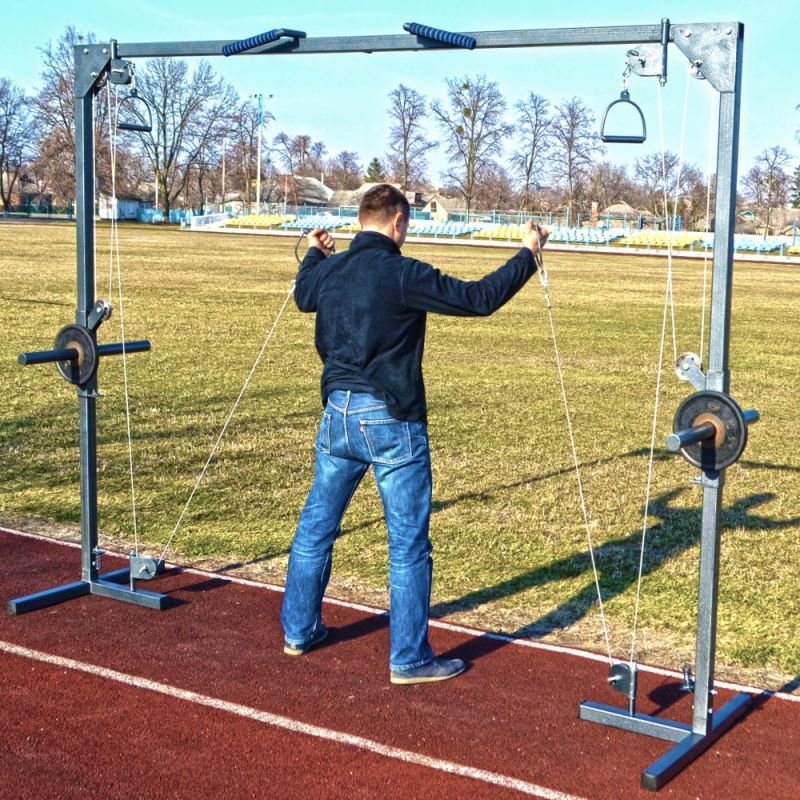 Даний тип тренажера відноситься до тросових тренажерів. Його особливість - відсутність блоків обтяжувачів. Натомість тренажер має рухому вагонетку з трубами під млинці (диски) від штанги. Діаметр труб 42 мм. Ролики металеві на підшипниках. Товщина тросу 3 мм.