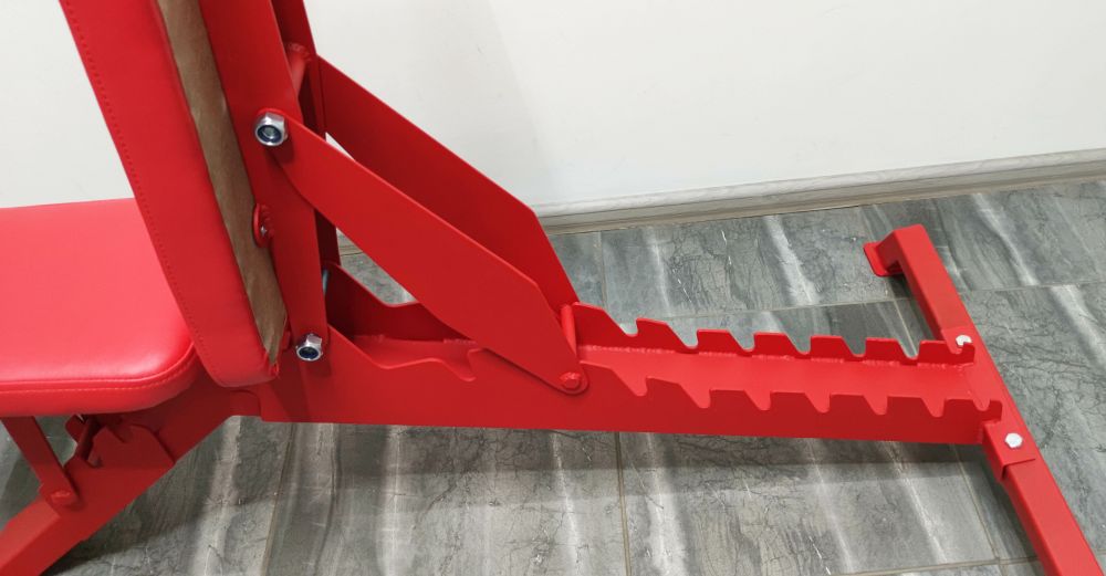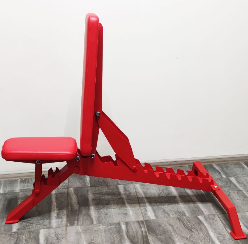 Каркас тренажеру виготовлеий із профілю 40*80 та має розбірну конструкцію. Спинка лавки має 7 положень регулювання по нахилу - від 0 до 90 градусів. Такий спектр дозволить підібрати необхідний кут та виконувати різні вправи - горизонтальний жим лежачи, жим лежачи під кутом, жим гантелей сидячи, підйом на біцепс та інші.