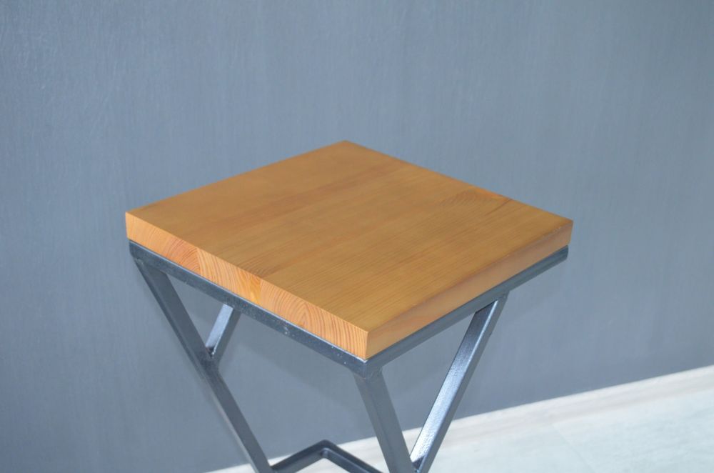Ціліснозварний металевий каркас із профільної труби 20х20 см, з товщиною стінок 2 мм. Верх стільця (сидіння) виготовлено з натурального, ідеально обробленого дерева (сосна), товщиною 3 см. Стілець має стійку та надійну конструкцію, і здатний витримати вагу до 180 кг. Також э зручна перекладина для ніг, яка забезпечить зручність для людини, що сидить.