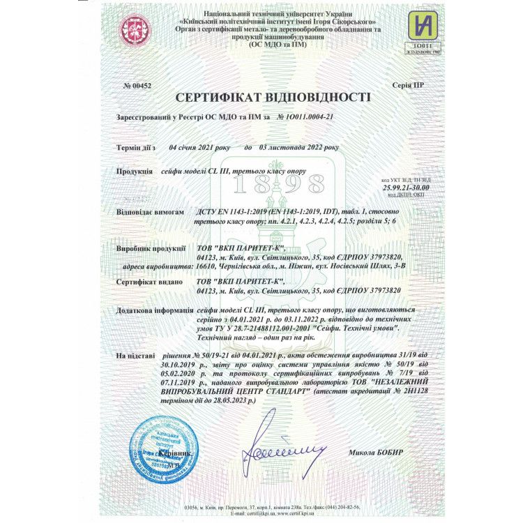 III класс ДСТУ EN 1143-1:2019